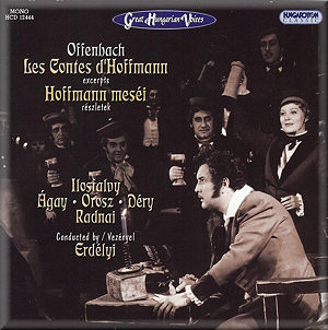 Róbert Ilosfalvy (tenor) – Hoffmann; Sándor Palescó (tenor) – Nathanael; György Radnai (baritone) – Coppelius; Dapertutto; Lindorf; Karola Ágay (soprano) – Olympia; Júlia Orosz (soprano) – Antonia; Árpád Kishegyi (tenor) – Frantz; Olga Szönyi (mezzo) – Niklausse; Gabriella Déry (soprano) – Giulietta; Stella; Miklós Petri (bass) – Schlemil; Endre Várhelyi (bass) – Luther; Tibor Nádas (bass) – Hermann; Edit Domján (speaking role) – The Muse; Hungarian Radio and Television Chorus and Orchestra/Miklós Erdélyi