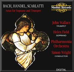 This disc, recorded in 1988, was intended to showcase the trumpet playing of John Wallace. He plays on a modern instrument with the Philharmonia Orchestra accompanying. We don't get period performance, but we do get some extremely stylish playing. And some superb trumpet playing. What they are capable of is indicated by the opening Battaglia and Marcia from Handel's Rinaldo. This is followed by the overture from Scarlatti's Il prigionier fortunato which uses four trumpets to quite brilliant effect.