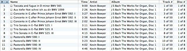 Prelude and fugue in A, BWV536 [6:36] Von Himmel hoch, BWV738 [1:11] In dulci jubilo, BWV751 [1:53] In dulci jubilo, BWV729 [2:11] Gelobet seist du, Jesu Christ, BWV697 [0:44] Gelobet seist du, Jesu Christ, BWV722 [1:19]