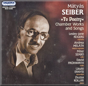 Seiber catches the romantic Finzian tones inherent in the Sarabande and Gigue in Old Style. David Frühwirth (violin) and Zsusza Kollár (piano) are utterly captivating in their hold on leisurely tension. We already know Frühwirth from the masterly emigré double album on Avie which also includes pieces by Wellesz, Spinner, Goldschmidt, Gellhorn, Tauský, Gál, Reizenstein and Rankl. Them comes the masterly song-cycle To Poetry with tranced settings sung with preternatural attention to breath control and engagement with the words. Lesley-Jane Rogers is indeed a great singer. Timor Mortuis, with its Dies irae is acted and moulded to words and mood changes. The pianist’s and the singer’s jaguar-swift mercurial responsiveness provides a tight match with the words. This cycle celebrates the stilly beauty of the stars. It contrasts with the lighter and brighter troubadour tone of Quatre chansons populaires françaises. These are sung by Andrea Mélath. They stand with Canteloube’s Auvergne settings in their winsome innocence and raucous and rough-edged humour - listen to the last song Marguerite elle est malade. These songs have delights indeed but they stand away from the depths of To Poetry which, had there been any justice, Seiber would have orchestrated to yet more magical effect. It was written for Peter Pears whose reputation also possesses a similarly anthology-based work by Britten, the Serenade. The Phantasy for cello and piano is a macabre and dissonant piece seemingly much inflected by nightmare. It demands much from the players who in this case are equal to its extraordinary angular demands. The Four Greek Folksongs take us back to the silvery voice of Ms Rogers. A Mediterranean magic casts its chuckling spell over Have pity on me. The set reminded me of the Swann Greek Folk Songs sequence on Divine Art. The Sonata da Camera is for violin and cello (1925). It’s a combination in which Kodály triumphed but Seiber is not far behind. For a work of his youngest years it has a concentrated inward sobriety and a macabre chittering second movement - of two. The Concert Piece for violin and piano. The Introduction and Allegro for Cello and Accordion is jaunty and lighter in mood and makes full use of the crunching Hungarian and oddly Irish jiggery of it all. It is a virtuoso display as one may expect from a composer who wrote quite a range of accordion pieces including a Mathis method of teaching accordion in ten sessions. It has the same mood profile as film music (Auiric for example) and I thought it utterly brilliant. The disc ends with the Five Petofi Songs which set Hungarian texts the first of which, Black Earth, in its heroic cast recalled for me Kodaly’s Psalmus Hungaricus. The goblin caper that is It’s raining raining makes marble hard impacts out of the pattering raindrops. It’s full of the Hungarian ‘sway’ we associate with Rozsa. The third and fifth songs recall the manner of the French Folk Songs but also link with those of Warlock and Moeran. Enjoy the smile in Andrea Mélath’s voice.