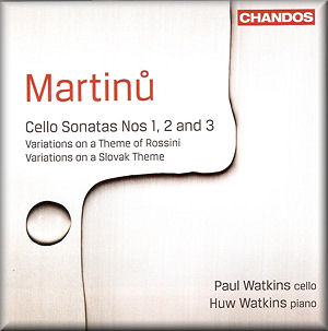 The opening of the Third Sonata always strikes me as Martinu’s ‘Policka Carillon’. The sense of nostalgia is pervasive, but whilst the Czech duo of Chuchro and Hála are affectionate and lyric, the Watkins duo reprise the tough love approach that they do, consistently it must be noted, display throughout. The Juliette theme is rather hammered out, and this heavy on the pedal and on the vibrato approach tends to minimise the more playful elements of the music. It’s no surprise that their slow movement is really fast. They sound a touch embarrassed by the opening pizzicato figures if taken slowly, so whip through them. It’s really more of an Allegretto than an Andante. I know the sonata was dedicated to the memory of Hans Kindler but Huw Watkins, in particular, really pile drives his way through it, as he did, rather showily, in the finale of the First.