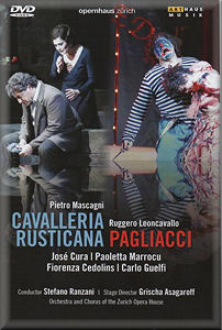 Pag DVD that I reviewed here had a particular gimmick to it: the tenor lead, Placido Domingo, was filmed singing both roles in the course of a single evening. On this new release, the two works once more share the same leading man though, as far as I know - precise filming details are not given - José Cura was allowed rather more time for a little rest and recuperation between his performances.