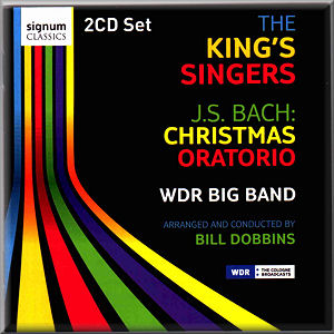 I so wanted the opening chorus Jauchzet frohlocket! to knock my socks off - check the Empire Brass with organ on an EMI disc Bach Festival for Brass & Organ for how exciting a non-baroque arrangement of this can be – or stick to the original! Instead we get a very tame nominally jazzed up doo-by-doo-by-dooed rhythm lacking any of the electricity of the original. The six voices of the Kings Singers cannot compete with a full chorus for sheer vocal impact and don’t we realise that straight off the bat. Another big disappointment is the vocal arranging. If this was going to work it would need a Manhattan Transfer type close-harmony group with mixed male and female voices. Maybe it’s just me but counter-tenors swinging it(?) and being hip just sounds outright odd. The voicing of the vocal writing lacks those edgy bittersweet harmonies and, let’s face it, sexy voices that make the ManTran or the Swingles so persuasive. Don’t get me wrong – the Kings Singers sing with all their usual exemplary technical finesse and skill – but I find it misplaced. From a singing point of view the arias and recitatives work the best – particularly the latter because they are the sections that rely least on a jazz feel. Conversely those are the same passages where the WDR Big Band sound least comfortable. There were extended passages when I felt the players were very self-consciously playing ‘straight’. The recitatives work rather nicely because of the added colour of some gently arppegiated acoustic guitar chords but against that the flutes sound too breathy and the trombones too lumpy. But then in the bigger choruses the singers stay solidly unconvincing. One thing that really does not work in the arias is the rhythm section particularly the ride cymbal, somehow the whole tempo and feel of these arrangements leaves the poor player stuck with a part that stubbornly refuses to have any groove at all. By far the most successful sections for the band are when they are unleashed from their inhibiting accompanying role and allowed to take ‘proper’ solos – suddenly the playing comes alive. I should mention at this point that this is a live performance so movements and solos are acknowledged by the audience in traditional jazz aficionado style. I don’t have any problems with that personally but I know it might grate with some listeners on repeated listening. Perhaps worth mentioning at this stage too that this is not a complete version of the Christmas Oratorio. Arranger/Conductor Bill Dobbins has made extended selections from all six of the cantatas that comprise the original work. Original texts with an English translation are supplied and the liner contains extensive photos from the concert(s) as well as an explanatory essay by Dobbins. One other aspect that grated; given the circumstances and line-up the Kings Singers needed to be amplified. Again I have no issue with that except it has meant that too often I find the singing has a crooning quality to it that I really do not like. Apart from anything else this seems to deprive the music – original or as arranged – of so much of the fundamental joy and energy which drives it; this is Bach in comfy slacks and a sensible pair of shoes.