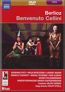 Overall, the singing is good but hardly inspired. Only Kate Aldrich is outstanding as Cellini’s friend and helper Ascanio - painfully dressed up as Star Wars’s C3PO in a gold robot costume. Her bright, secure voice glimmers in every scene in which she appears. Burkhard Fritz makes a firm-voiced but dispassionate Cellini. Maija Kovalevska certainly has the looks for Cellini’s lover Teresa, but she gets few opportunities to shine, and close-up shots reveal an unconvincing woodenness to her acting. The chorus of the Vienna State Opera also appear unsure of how to behave in their grotesquely over-the-top wigs and costumes.