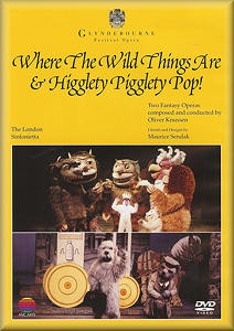 Higglety Pigglety Pop! (or There must be more to life than having everything) is a surreal tale of Jennie (a Sealyham Terrier) discontented with her lot. She is in this state despite reassurances from a singing potted geranium - which she then eats - that she is better off not going ‘outside’ with all her possessions in a black bag. She does, and meets the Alice in Wonderland characters who populate this weird allegory: a milkman cat, a pig in a sandwich board, a fearsome lion, a parlour maid, a baby and a duetting ash tree. Beautifully sung by Cynthia Buchan, Deborah Rees, Andrew Gallagher, Neil Jenkins, Rosemary Hardy and Stephen Richardson, this and The Wild Things are expertly accompanied by the London Sinfonietta and Knussen himself. This double-bill, as I recall it, was remarkably popular with the traditionally conservative Glyndebourne audience, which in itself gives this DVD a strong fillip.