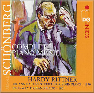 The German pianist Hardy Rittner was a name new to me and is still under 30. He is especially interested in the ‘early piano’ and has been a pupil of Paul Badura-Skoda well known for his Haydn as well as other things. In 2009 Rittner received the ECHO Klassik prize of the German music industry as ‘Young Newcomer of the Year”. His approach to Schoenberg is fresh, technically totally reliable and sensitive to the romantic nuances as well as to the bold new musical concepts the composer espoused.