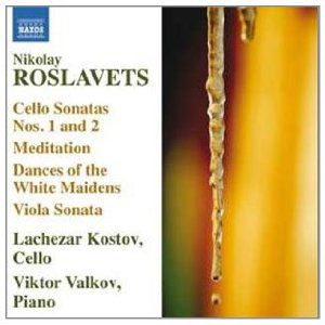 The compositions on this disc will be further assistance in putting Roslavets’ music in the spotlight. It will undoubtedly be recognised for the brilliance of its writing and the new direction that was being ploughed in that brief but exciting period of the early twentieth century in Russia. The Cello Sonata No.1 from 1921 launches itself straight into spiky rhythms without any preamble. Those listeners who might be put off in advance by the comparison with Schoenberg often, and I think incorrectly, made, should take heart as this is by no means full blown atonality. It is full of inventiveness characterised by beautifully lyrical lines tinged with the anguish so redolent in ‘the Russian soul’. The Sonata’s tortured cello line continues until half way when there is something of a more calming aspect that comes to the fore. The over-arching sadness returns to conclude the work. Overall it puts the players to the test as this is technically difficult music. It is to the credit of the two young players here that there is little hint of that. ‘Meditation’ opens with another very serious and reflective theme and its mood is maintained throughout. The Sonata No.2 at twice the length of the first is once again a meditative, introspective piece that pulls no punches in the emotion it conjures but contains some beautiful melodies, particularly in the piano parts that provide a counter to the cello’s more sombre mood. Dances of the White Maidens is the earliest work on the disc, dating as it does from 1912, and shows Roslavets as the innovator that other composers recognised him to be. The opening notes from the cello are more lyrical and less tortured though still soulful and the theme is worked on throughout the piece. As the liner-notes put it the work, takes one into “a mystical and ethereal universe” which is underlined when, at the end the instruments simply dissolve into silence. The final work, the Viola Sonata, transcribed for cello and piano is a lovely one with gorgeously rich harmonies that the two instruments weave between them. It repays frequent hearings, as do all the works here. The main theme is so full of passion that one regrets it when the end comes making you want more. It is the least difficult music on the disc and is immediately rewarding.