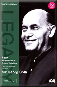 They say this is the first time these televised live concert performances have been released on DVD. Were they ever released on videocassette or any other video format – I think not. Solti’s stereo analogue reading of Elgar 2 is known from the Decca LP and cassette recording of the time complete with its iconic sleeve design. It has been much reissued. I saw and still remember the 1975 broadcast under review, believe it or not - on a small black and white TV; it was electrifying even then. Now it has a new breadth and visual zest. It’s an added dimension that really adds usefully to the musical-emotional experience. As for Enigma, Solti’s Decca audio version was with his long-time collaborators, the Chicago Symphony. This DVD allows us to hear him in company with the LPO also at London’s Royal Festival Hall. This venue is splendid in its natural light-wood-appointed walls and floors and with an audience present. There is the odd cough – as at 3.31 in the first movement of the Symphony but nothing really untoward. Neither of these works were filmed in high-definition – unthought of at the time - but the picture is stable and makes for more than acceptable viewing. The Second Symphony is in agreeably clear colour – slightly bleached by comparison with the marginally warmer picture for the 1979 Enigma.
