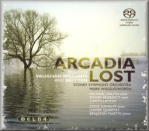 Nothing here is rare but the combination of works is unique. There’s Britten’s grim and grittily impressive Sinfonia, two concertante works from RVW and a classic Housman work for piano quintet and tenor – the house tenor Steve Davislim. The orchestral items are conducted by Mark Wigglesworth whose Mahler and Shostakovich have been praised in these pages. The Lark is an excellent version: throaty, atmospheric, glitz-free and with telling attention to dynamics. Michael Dauth’s violin is caringly touching. There’s at least one cough. A very fine concert version. Flos Campi has Roger Benedict’s stirringly recorded viola: auburn, amber and russet in tone. The music is given a passionately taut surge rather than a flaccid sigh. Cantillation are heard in sound that is prominent and power-dressed. The Britten Sinfonia da Requiem sits uncomfortably in this pastoral transcendental company. This is Britten’s only approach to a purely orchestral and epic toned symphony. Wigglesworth is excellent but the sound here is not as spectacular as that accorded to Previn by EMI. It still carried a very symphonic feel – the same stamp as the indomitably irresistible trudge one also hears in Alwyn’s Fifth Symphony.