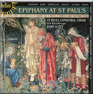 I have listened to and reviewed with great pleasure reissues on the Helios label of two recordings made in the late 1980s of the Choir of St Paul’s Cathedral singing the Evening Canticles. This much later recording is, if anything, even better and more welcome. The choir seems to have even more confidence, the recording skilfully manages to overcome the inherent problems of recording in the Cathedral without losing the sense of the distinct acoustic of the building. The choice of music is more varied, being no longer restricted to settings of the same texts. The choice is indeed very well made, avoiding the most obvious pieces related to Epiphany - apart from Cornelius’ The Three Kings, in the arrangement by Sir Ivor Atkins, but sounding more convincing than usual. The highlights include Wesley’s wonderful Ascribe unto the Lord, a much larger scale structure than is usual for Anglican anthems, but supremely well constructed, exciting and moving. At the other extreme are Holst’s tiny but concentrated Nunc dimittis and Crotch’s naïve and even ebullient Lo! Star-led chiefs, both always welcome, especially when performed as well as they are here.