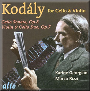 From its famous opening theme, where Kodály has the cello employing scordatura - the cello is tuned a semitone down - giving the instrument an especially rich and deep timbre, to the dazzling finale that is like some wild Hungarian dance, the Sonata remains in one's head long after it has finished. It has received many recorded performances and Georgian's can certainly join the best of them. As in the Duo, she projects all the power and emotion that the work contains and is not afraid to produce an ugly sound when that is required. If I were to put forward just one recording of the these two masterworks appearing together, it would be Janos Starker's of the Sonata with Josef Gingold in the Duo on Delos. Theirs may be considered the benchmark in terms of the utter naturalness and beauty. Another superb recording of the Sonata that also contains three of Kodály's works for cello and piano is the EMI debut CD of the Korean cellist Sung-Won Yang with pianist Ick-Choo Moon. If you want all of the composer's works for cello, though, you will find them on two Naxos discs with Maria Kliegel as cellist. Georgian and Rizzi are in the same class and do complete justice to the works on the present disc.