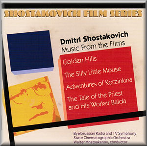 Given how highly I rate the composer in this genre you might rightly expect that I would be eagerly interested in any series of discs surveying his output. This disc from Delos is entitled Volume 5. A few things to make clear - these are licensed re-releases of discs originally made for Russian Disc, in the case of the current disc in 1997. So for Delos to mark the liner "newly recorded" is frankly misleading. Yes they have been newly re-mastered but in no sense are they 'new'. Elsewhere, everything is pretty much as the avid collector of this type of music would expect. The use of second tier Russian orchestras and locally sourced master tapes ensures a certain sound that could be described as somewhat rough and ready. Not that this is necessarily a bad thing in music like this; it is after all deliberately simplistic in creation of mood (most of the time) and the shallow sound-stage and slightly harsh recorded quality add a kind of authenticity to the performances that works well. On this volume four scores are presented which interestingly straddle the famous "muddle instead of music" denunciation of 1936. The Golden Hills and The tale of the Priest and his worker Balda are from the time when Shostakovich's star was firmly ascendant. The Adventures of Korzinkina and The Silly Little Mouse are sandwiched between that denunciation and the Soviet Union's entry into the Second World War. The former fascinatingly has the Opus number (59) immediately preceding the Leningrad Symphony which pretty much overnight secured the rehabilitation of the composer and made him a globally important composer and as such all but untouchable even in the paranoid Soviet Union.
