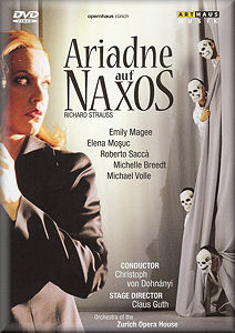 I had never really thought of Christoph von Dohnányi as a Straussian, but here he shows a complete mastery of the Strauss idiom and an almost unparalleled understanding of the importance of the small orchestra required by Ariadne. His is a performance of more heft than the version by Sinopoli (see review), more reminiscent of the Solti recording or the live Böhm. As regards the orchestra, the first horn and several of the woodwinds of the Zurich Opera should be commended, although the sound quality of this disc does not always serve them well. Overall, the visuals present no major problems, although this production was originally for television. This is a Region “0” release of a DVD previously available in North America (also on Blu-ray). One can warmly endorse this DVD musically, if not scenically, but the deciding factor would have to be Dohnányi’s overall conception and his firm command of the score.
