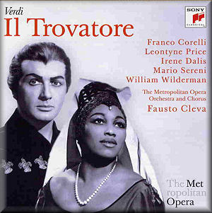 As I have indicated, if you want Price as Leonora go for the mid-priced RCA which also has the additional strengths of a steady and virile Domingo as Manrico and Sherrill Milnes as a fine Di Luna. There are also distinguished studio recordings featuring Jussi Björling and Zinka Milanov in far better sound in March 1952 (see review) and from DG a 1962 La Scala-based stereo recording conducted with a touch too much affection by Tulio Serafin. Its great virtue is that it is blessed with an all-Italian cast to join the vibrant La Scala chorus. Notable are Carlo Bergonzi as Manrico and the young Fiorenza Cossotto as Azucena (DG 453 118-2).
