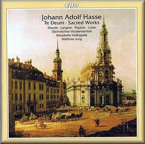Sub tuum praesidium is a short piece. It was originally the antiphon to the Nunc Dimittis at Compline, but in Germany the text was expanded into a Marian prayer. This form is the one set by Hasse in 1750, also for Saturday afternoon services. Two Tantum Ergo settings are included, both quite substantial. A short hymn used for sacramental devotions dates from the mid-1750s (Tantum Ergo in C minor) and from around 1780 comes the Tantum Ergo in E flat major. This latter Tantum Ergo was written by Hasse when in retirement in Vienna. He sent the manuscript to Dresden but it does not seem to have been taken up. The programme concludes with the earliest piece on the disc, a setting of the Regina Coeli. This seems to have been in use since 1710 and remained in use by the Dresden Jesuits until the 20th century. Hasse's music is fluent and graceful with all the galant qualities of the period. It doesn't dig beneath the surface, but must have made an attractive backdrop to court or church ceremonial. The Sächsiches Vocalensemble makes a nice bright sound with a focused line and good sense of style. The Batzdorfer Hofkapelle make a clean lithe sound. Both choir and orchestra are relatively small, as was probably the case at the original performances. Soloists Barbara Christina Steude, Susanne Langner, Georg Poplutz and Matthias Lutze do not have great voices, but they are young and bright, without overly-intrusive vibrato and they blend nicely. Matthias Jung conducts with precision and keeps the music moving without pressing. The CD booklet includes a full article about Hasse and the music, plus texts and translations. This isn't great music, but it is well crafted and attractive and is presented in persuasive performances.