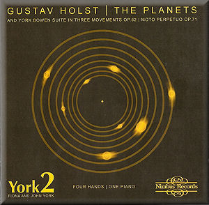John and Fiona York have a close connection with Gustav Holst beyond their impressive realisation of The Planets on this excellent new recording from Nimbus. They are both teachers at St. Paul’s Girls School, Hammersmith where Holst was the director of music for nearly thirty years. The CD liner-notes tell how John York found a leather-bound engraved copy of the four hands/one-piano version of The Planets. It had been signed by the composer and his two assistants on the project Nora Day and Vally Lasker. The piano duet team decided that the time was ripe to revive this long forgotten score.