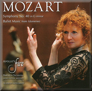Apollo’s Fire is described in the booklet as The Cleveland Baroque Orchestra and it is a well disciplined and stylish ensemble. I have never been one for original instruments but on the strength of this performance of K550 I am willing to give it a chance. Having just been listening to Malcolm Sargent’s 1927 recording of the work this performance was like drinking a glass of ice cold water after a couple of pints of Winter Warmer. Jeanette Sorrell directs a nicely paced – very sensible tempi throughout – performance, with a keen ear for sonority and balance. She is helped by a marvellously clear and bright recording which allows every strand to be clearly heard. There’s fire and passion in the outer movements, with the exposition repeats taken in both; the second repeat is also observed in the finale, which add to the dynamic of the performance. The slow movement is a fastish Andante which makes the music flow very gracefully and the minuet is a stamping, deliberate, dance. It all bodes well for a fine performance and the playing is excellent but why, if this is supposed to be a performance in the original manner, does Ms Sorrell indulge in big romantic rallentandi at cadential points. This is done not just at the end of movements but during their course – such as the slowing during a silence at 8:18 of the finale, or the very mannered rubato at 4.38 of the same movement. It seems that Ms Sorrell has worked these obtrusions into her interpretation and instead of pure Mozart we get an original performance channelled through a late 19th/early 20th century performance mentality. If one was listening to the Sargent 1927 recording you’d expect such actions, but not when listening to a contemporary original instruments performance. What this proves is that you can use original instruments but you can never clear the mind of subsequent performance practice. The sound is fabulous.