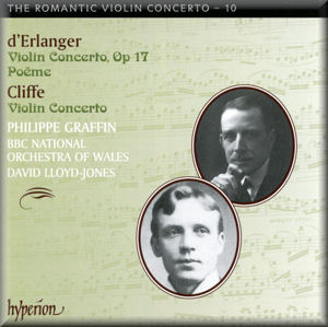 Hyperion do not shill-shally around. They could so easily have blanched at the perceived risks of issuing a CD of two completely unknown half hour British violin concertos. The alterative was to have harnessed one with a better known or even famous concerto in the time-honoured fashion. Their resolve has not failed them and so we have here three unknown works by two unknown composers – allowing for the Cliffe CD of the First Symphony on Sterling. The chosen soloist is Philippe Graffin who has already won his spurs with the first recording issued of the Coleridge Taylor concerto (Avie) not to mention fine projects with Hyperion: the three Saint-Saens concertos, the Breville and Canteloube collection and another disc including the Goldmark suite and the sumptuous Bruno Walter sonata.