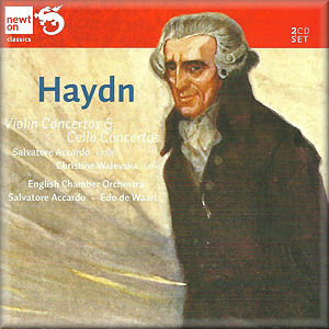 While they may not be the greatest of Haydn, these concertos have plenty to recommend them. The violin concertos tend to go in for rather loose but engaging first movements and colourful finales. The central adagios (especially that of No.1) contain a number of beautiful passages. Salvatore Accardo, as both soloist and director of the English Chamber Orchestra, delineates pretty well the essential vivacity and lightness of these concertos; his playing in the finale of No.1 makes light of the technical demands and communicates the music’s essential exhilaration. These may not be ‘authentic’ performances but they respond to the music’s spirit and are thoroughly enjoyable. Unfortunately the same cannot be said for the performances of the two cello concertos. The orchestral playing - which presumably reflects the direction of Edo de Waart - is somewhat sluggish and the soloist, Christine Walevska never sounds fully at home; she fails to find a consistently convincing Haydn manner and her work is marred by an inappropriately overdone vibrato. The reading of the most mature Haydn work on these discs – the cello concerto in D – is particularly disappointing, failing to capture much of either the lyricism or wit of the piece.