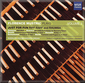 This is Volume 3 in the MSR Classics series entitled "Florence Mustric Plays". Volume 2, played on the same organ, is reviewed here. This latest release carries the subtitle "Just for Fun", which is perhaps a bit of an exaggeration - the varied programme is more light than light-hearted, and with several pieces lacking in memorable fibre, comes across as a little unfocused.