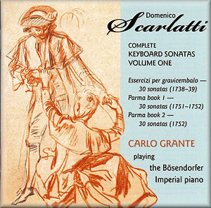 The first two CDs of Volume I are given over to the 30 Essercizi (Esercizi in modern Italian) published most likely in 1738. The remaining 4 discs, and all six of Volume II, are of music taken from the first five volumes held in the Palatina National Library at Parma, Italy, with a further ten still to come. Grante's decision to play them in this sequence often takes them out of the order devised by Kirkpatrick, a flawed system, but still with wide currency; but this is of little real consequence from a chronological or stylistic point of view, because none of Scarlatti's autographs have survived, and there is thus no way of knowing what order they were composed in. In any case, most of the Sonatas relate to the creatively intensive period Scarlatti spent in Spain, where he had no real need to 'evolve' as a composer.