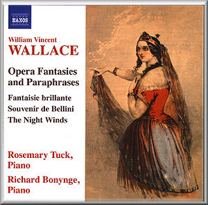 Wallace certainly knew how to write effectively for the piano and his operatic fantasies all pass what one might call the “Liszt test”: namely, that a listener unaware of the origin of the music would not guess it not to have been originally written for piano. It might be difficult to prefer Wallace’s Rigoletto piece to Liszt’s celebrated transcription, one of the few that stayed in the repertoire even when Liszt’s works of this kind were sneered at. But Wallace’s version of Ange si pur from Donizetti’s La Favorite (not included here) could well be thought much more to the point than Liszt’s lugubrious and interminable essay on the same aria. Let us keep things in their proportions, though. If Wallace could hold up his head alongside Liszt in the world of the operatic paraphrase, Funerailles, La Vallée d’Obermann or the B minor Sonata were clearly beyond his scope.