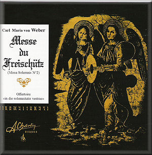 I should start by explaining that there is some confusion in my mind as to what is on this disc. The cover states that it contains the “Messe du Freischütz” and that this is Weber’s Missa Solemnis No 2 in E flat major. Grove however lists Weber’s Freischütz Mass as being No. 1, giving it the Opus and J numbers shown above. I assume that this is the work we have here although I have been unable to obtain a score (Faber publish a scholarly edition) and the notes with the disc are meagre in the extreme. Listening to it with a more innocent ear than I would have preferred I quickly concluded that whatever its real title this is a magnificent work deserving more frequent performance and recordings.