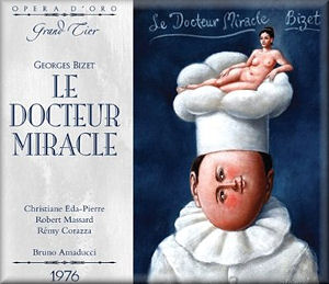 Having adumbrated the disadvantages, I must redress the balance by confirming that there is much light, charming music to delight here. Written when Bizet was only eighteen years old and based on a French adaptation of Richard Brinsley Sheridan's "St Patrick's Day", Le docteur Miracle contains echoes of Rossini and passages anticipatory of Carmen; the greatest pleasure comes from the lively ensembles. All four singers are accomplished artists, especially Massard, the epitome of elegant French baritones. Christiane Eda-Pierre’s creamy, plaintive soprano occasionally skirts a certain under-the-note quality but she is an accomplished and touching singer with an excellent trill; her aria "Ne me grondez pas" is reminiscent of Teresa's aria "Je vais le voir" from Berlioz's Benvenuto Cellini which Eda-Pierre recorded under Colin Davis. Lyliane Guitton is excellent as Véronique and Rémy Corazza a bit bleaty in the tenor role but wholly in genre; his voice reminds me very much of Welsh tenor Ryland Davies. The Radio France orchestra is rather dimly recorded but plays well and Amaducci's conducting is idiomatic.
