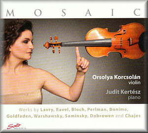 This program would probably not make a good differentiated recital: it is rather uniform. But if you are in the mood, this uniformity can even be a good thing. Uniform does not mean monotonous. Bloch’s Baal Shem is the magnificent centerpiece, full of genuine sentiment. The smaller-scale songs by Goldfaden and Warshawsky bring intimacy. Soft humor shines through in Perlman’s attractive Dance of the Rebbitzen. The great diversity of techniques across this recital encompasses the entire palette of violin playing. Orsolya Korcsolán delivers with a sure hand. She imbues this music with dignity and grandeur; some works come out more monumental than they were probably supposed to be. Korcsolán finds an excellent partner in Judit Kertész. Her playing is rhythmically firm, compact yet expressive, bouncy and energetic. The violin is well recorded with power and space although at times the piano seems too remote and can sound a bit dull.