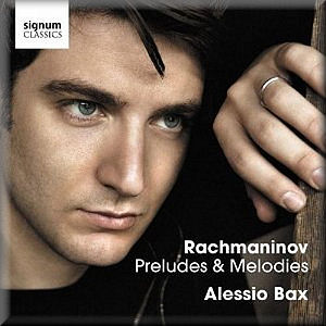 Alessio Bax is a former winner of the Leeds and Hamamatsu International piano competitions. He has previously released 2 CDs of Baroque transcriptions (both of which are excellent) as well as some two-keyboard works recorded with his wife Lucille Chung. In this recital entitled ‘Preludes and Melodies’, he plays Rachmaninov’s complete preludes Op 23, a series of transcriptions (including Bax’s own transcription of ‘Vocalise’) and a miscellaneous selection of Rachmaninov’s lesser known works spanning the composer’s career.