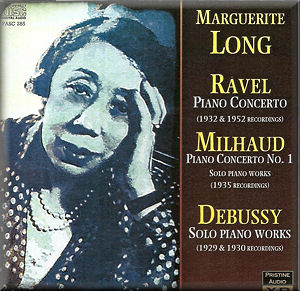 This disc gives us the rare opportunity to hear Marguerite Long perform on a single disc the Ravel Concerto in the two recordings she made. The first was made in 1932, conducted by Pedro de Freitas Branco – the long fiction that this was conducted personally by the composer was ended years ago – and the second followed twenty years later, when Georges Tzipine was the conductor. The earlier recording is the one more often encountered on disc, so it’s good to hear the later version, though not everyone will be keen as mustard to have the duplication.