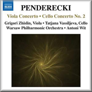 Of the two, the Viola Concerto merits attention as an excellent twentieth century contribution to the genre. In contrast to the conventional multi-movement structure associated with concertos, this continuous score stands apart on account of the drive it sustains from the opening section to the final one. At its core is the alternation between the contrasting passages for solo instrument and full orchestra. There is a real interplay of textures here and Penderecki’s ideas emerge from the sonorities at the opening for solo instrument and from the initial passage for orchestra. While the work starts and ends in a solemn, somewhat somber mode, the contrasting sections suggest arch-form. The impression is underlined by the Scherzo-like passages in the Meno mosso and Vivo sections. Those passages have a lighter character which allows soloist Grigori Zhislin to demonstration his facility and Wit to shape the entire piece convincingly.