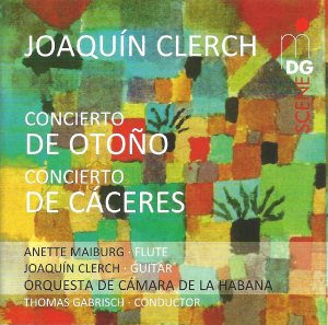 The Cuban Joaquín Clerch is best-known as a guitarist; on the evidence of once having heard him give a recital in Salzburg, I’d say he’s a very good one, and a much better qualified judge, Eliot Fisk, has said of him that he “is undoubtedly one of the world’s leading figures, perhaps even the leading figure, among the guitarists of his generation”. His work as a composer is rather less well known; even his web-site lacks any information on this side of his musical activity. These two concertos present him as a composer extending the Latin-American tradition, a relatively conservative (my use of the adjective is purely descriptive, not judgemental) descendant of, say, Ginastera. The Latin flavour is generally present, but by no means everywhere dominant, and the writing is lucid, its sophistication unforced and free of undue elaboration.