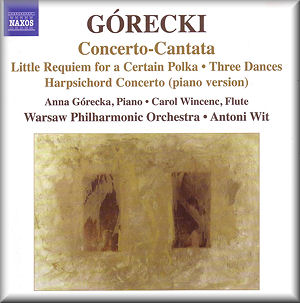 Anna Górecka, the composer’s daughter, turns in a roller-coaster of a performance of the concerto, with tempi substantially faster than those adopted by harpsichordist Elzbieta Chojnacka, for whom the work was written, on a Nonesuch disc. That disc also features the Requiem, but these Naxos performances are preferable, above all for the frenzied energy of the faster music. Carol Wincenc, who gave the first performance of