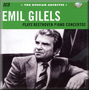 Brilliant have licensed the present, more recent, recordings – made for radio at live concerts with audiences present - from Gostelradiofund. They are not new to disc and were reviewed by Jonathan Woolf as part of a six disc all-Gilels all-Beethoven set in 2004. The conductor is Kurt Masur in his pre-NYPO days. The forthright recordings place the sound confidently in the foreground. Gilels and Masur play and shape their roles likewise. There is delicacy but Gilels is also a master of dignified virtuoso brilliance as the exuberantly sprung finales of the First and Second Concertos tell us. The presence of the audience is obvious enough from the occasional cough. There are creaks, page-turns and all the usual detritus attendant on the presence of people. None of that diminishes the listener’s pleasure in these ripely enjoyable readings which only turn a shade shrill at fortissimo.