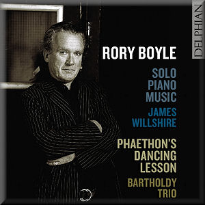 Phaethon's Dancing Lesson (Boyle's Second Piano Trio), both Bartók and Ravel emerge as the primary influences. In this piece, James Willshire is joined by the other members of the Bartholdy Trio, Julia Joyce and Andrew Joyce on violin and cello respectively. Together they give a powerful performance. The work boasts marvellously lyrical passages (try from 3:22) alternating with more energetic episodes. Occasionally, I was even reminded of Moeran's dark and powerful Cello Sonata.