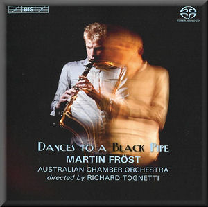 Part of Martin Fröst’s extraordinary artistry is his talent for creating eclectic, fascinating programs for performance and compact disc. He’s at it again here, with a truly fantastic title, Dances to a Black Pipe, which heralds the twin currents of dance and darkness. We have sprightly arrangements of Brahms’ Hungarian Dances for clarinet and chamber orchestra, dispatched with élan and Fröst’s customary virtuosity, a marvelous klezmer trifle by the clarinetist’s brother, and Piazzolla’s muted Oblivion, all set alongside a dance cycle by Lutoslawski and two brand-new works composed for the performer, by Anders Hillborg and Fredrik Högberg. Bookending this feast are rival accounts of Aaron Copland’s clarinet concerto: the standard version and the original, more virtuosic finale.