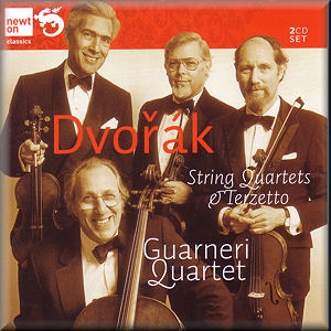After my disappointment with their Schubert late quartets from the same label, I am delighted to endorse this anthology from the Guarneri. They seem to be so much more in sympathy with Dvořák’s bucolic lyricism than the tormented, Angst-ridden beauty of Schubert’s idiom and although they do not bring quite the same overt attack as, say, the Lindsays to the furiants, there is a gentle naturalness to their playing which allows the music to unfold without any self-conscious striving after effect.
