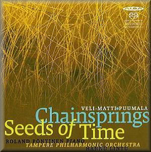 The orchestration of Chainsprings is bizarre but intriguing: the booklet lists "Balkan folk music, French spectral music, Finnish orchestral canon, Italian virtuosity and Indonesian gamelan music." If that sounds like a recipe for mash, there is some truth in that, certainly. In fairness, that was Puumala's intention: to evolve contrasting fragments into a coherent landscape over time. Whether or not he does that with complete success is a moot point, but so much goes on in Chainsprings that it is hard not to be impressed by the interweaving of elements and the overall dramatic effect alike. This is one of a trilogy of orchestral Chain works, along with Chant Chains and Chains of Camenae, that must count among his most significant compositions.
