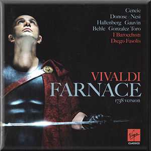 A sharp-eyed reader may notice the 'G' after the RV or Ryom-Verzeichnis number. Peter Ryom's catalogue numbers, so valuable to the collector of Vivaldi's concertos to ensure that a CD contains new pieces you have not already purchased - OK, perhaps only I use it that way! - are given suffix letters only when various versions exist of a composition. Since Farnace is just such a piece a large part of the fascinating booklet is devoted to explaining in exhaustive detail why this is 711G rather than any of A to H. Far from being dull, this account is full of intriguing social and musical history and describes the sometimes unpleasant reality of a baroque composer's life. Remember that before Beethoven composers were servants of the rich and treated as such. As it happens there is little chance that you will be mixing this version up with all the others you own because the Alia Vox recording is clearly labelled '1727 version' and Jordi Savall's version equally clearly 'RV771D'. There are substantial differences between this final version intended for performance in Ferrara, and those earlier ones, so from a listener's point-of-view the present set is worth buying as well because firstly a lot of the music was recomposed or written entirely afresh by the composer, and secondly the final act, never completed by him, has been reconstructed by the conductor Diego Fasolis and musicologist Frédéric Delaméa. This too is detailed in the booklet.