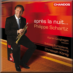 st century trumpet concertos. They’re modestly accompanied by string orchestra and in a some cases by an additional instrument. Philippe Schartz maintains a lyrical focus throughout.