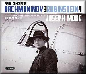 Joseph Moog, age 24 and looking on the booklet photograph like a dashing star of early talking-era movies, is about as technically impressive a pianist as can be found in that age bracket. He has already recorded two solo recitals for the Claves label which showed a truly adventurous spirit - Jonathan Woolf found one “audacious” but dry. Now for Onyx he offers the unceasingly renowned Rachmaninov Third Concerto with the Fourth Concerto by Anton Rubinstein. The latter, which is played first, was the template from which Rachmaninov - and, one suspects, Tchaikovsky - worked, and this coupling makes the stylistic influence obvious. Rubinstein’s Fourth had, before the Rach-Tchaik duo stormed through concert halls everywhere, been one of the most popular and most performed concertos around, from its completion in 1872 through the first decades of the last century.