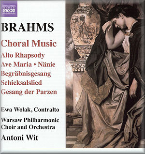 Nanie was written in memory of the painter Anselm Feuerbach. In its gentle melancholy it is perhaps the most perfectly balanced of Brahms’ choral works. These elements are lovingly brought out by Wit and his performers. The Gesang der Parzen (Song of the Fates), to a text from Goethe’s Iphigenie auf Tauris, was the composer’s last major choral work. It foreshadows some of the later works such as Op. 110 and Op. 121 in their concern with old age and approaching death. As in the Schicksalslied the happy life of those above - in this case the Greek Gods - is compared to the brevity and misery of those on earth. The Gesang does not end with a consolatory section as does the earlier work. Instead the human voices weaken and finally die away. Wit’s conception of the piece is well-thought out. On the other hand the chorus is quite shrill and the orchestra somewhat lets him down by playing without the requisite pathos.