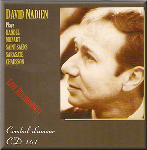 Cembal d’amour’s excellent series of recordings devoted to violinist David Nadien continues with an all-live affair covering the years 1974 and 1977. I’ve written about Nadien on many occasions, and invariably with admiration, and it’s appropriate that his art should be perpetuated in this way.