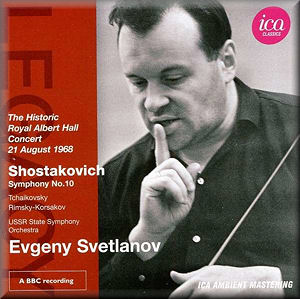 How’s this for a page ripped from history? On the night of 20-21 August 1968 tanks from the Warsaw Pact rolled into Czechoslovakia, bringing the ‘Prague Spring’ to an end. In that raw, angry atmosphere it’s no surprise that Svetlanov and his Soviet orchestra were given a rough reception at the BBC Proms just hours later. Indeed, the opening bars of the symphony emerge from what sounds like a near riot in the hall, the music growing in strength as the clamour subsides. What irony that this symphony - written in the year of Stalin’s death - should be the curtain-raiser for another age of repression. And the cover photograph of Svetlanov - finger to his lips - is a strong visual metaphor for the day’s momentous events.