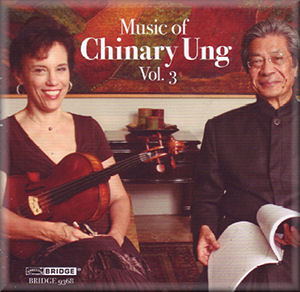 This is the third volume issued by Bridge of the music of Chinary Ung; the previous volumes (9277, 9321) contain earlier pieces dating back as far as 1980, so their style may perhaps be different. The back of the disc shows a picture of performers in front of a very large and resplendent gong, but there seem to be more of them shown than actually perform on this disc.