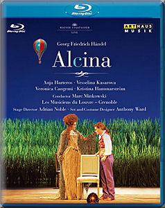Then there is the music. Alcina has benefited from several recordings, led by William Christie, Alan Curtis, Richard Hickox and others, and one other filmed version is currently available. In this performance, the balance between Mark Minkowski's Musiciens du Louvre and the singers is perfect, and the recording is natural, with excellent sound. All of the soloists are excellent, and the audience doesn't hesitate to applaud after many of the arias. Anja Harteros is very moving as Alcina, especially in the long aria "Regina, sei tradita". Vesselina Kasarova is excellent as Ruggiero, though her acting and movements are a bit rigid. While this is essentially a feminine performance, Adam Plachetka gets a wonderful, long aria in the first act, and is greeted with well-deserved applause. One other highlight is the teenaged Alois Mühlbacher in the role of Oberto, who, if his voice doesn’t change too much, has an amazing career ahead of him as a counter-tenor. Some of the audience's most boisterous applause was for him after "Sin per le vie del sole" in act 3.