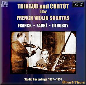 This disc is released under the title ‘Thibaud and Cortot play French violin sonatas’. It contains three major sonatas, the Franck, the Debussy, and the first Fauré. A couple of encores (the Fauré Berceuse and an arrangement of Minstrels from the Debussy Preludes Book 1) strike a lighter note The recordings date from between 1927 for the Fauré and 1931 for the Berceuse. The arrangement of the three sonatas is logical, moving from romanticism (Franck) to modernism (Debussy), by way of the Fauré which combines elements of both.
