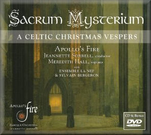 The concept of this album, as explained in the generous and informative notes is a blending of the ancient celebration of the Celts at the Winter Solstice and the traditional Christian story of Christmas; both about the coming of light and hope. Jeanette Sorrell, the musical director of Apollo’s Fire, has brought together medieval Vespers of St. Kentigern (Patron Saint of Glasgow) with pagan and Christian carols, popular tunes from 17th-century Welsh and Scottish manuscripts for lute and harp. This celebration was premiered last year at Trinity Cathedral in Cleveland, Ohio and extracts from that concert are included in the bonus DVD.