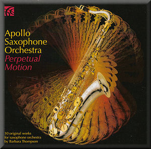 Her twelve-saxophone ensemble plays ten original works. One can hear from the first track, Perpetual Motion how rich and colourful is her scoring, its density and contrapuntal cleverness going hand in hand. Here that feeling is further vitalised by a slowing down to a frolicking section, rather like a Scotch Snap. Her Dear Bach hones in on an almost Stokowskian sense of the composer's sheer amplitude, her organ chords and 'pedal' writing, as transferred to the saxophonic band, allowing little solo fantasias to emerge from the music's thickets, like a theme and variation. To me, the haunting aura of Gil Evans is also present.
